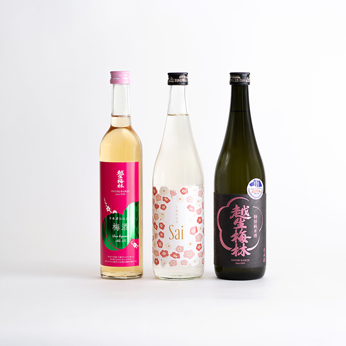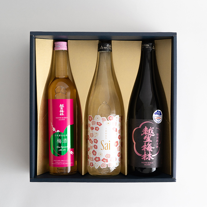 「Sai うめのはな」「越生梅林 梅酒(うめざけ)」「越生梅林 特別純米酒」の3本が入ったギフトセット。